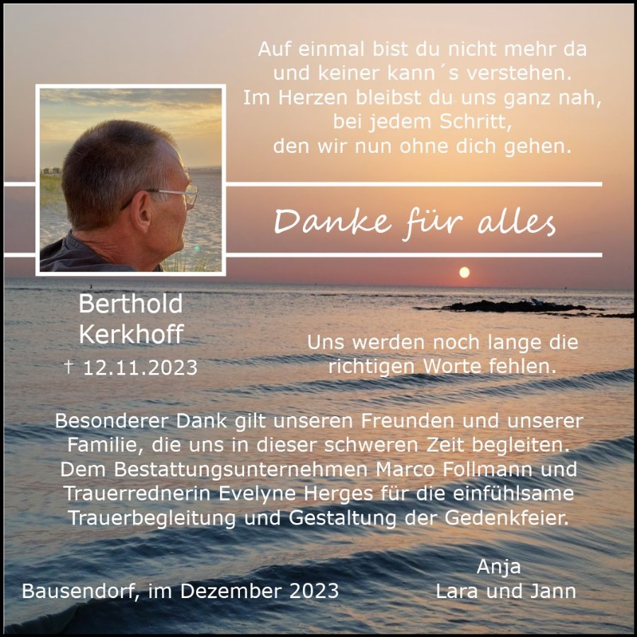 Liebe Anja,mit großer Betroffenheit und Anteilnahme möchte ich Dir mein tief empfundenes Mitgefühl aussprechen. Es ist so unsagbar schwer hier die richtigen Worte zu finden. Ich wünsche Dir für die kommende Zeit viel Kraft und Zuversicht. Christiane