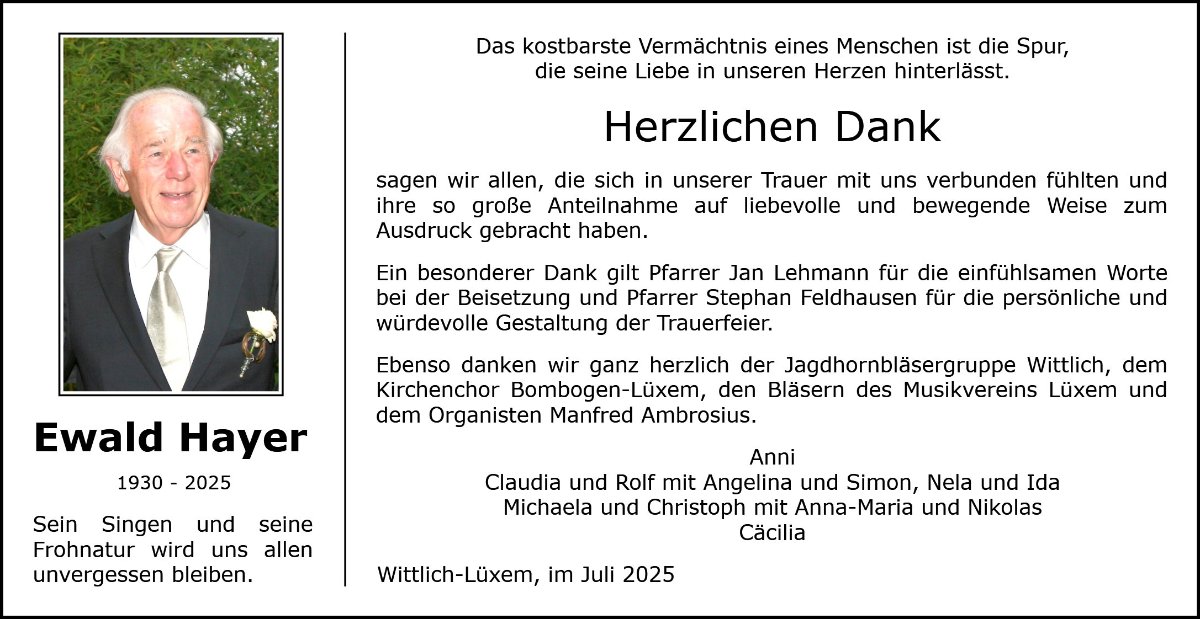 Liebe Familie Hayer,