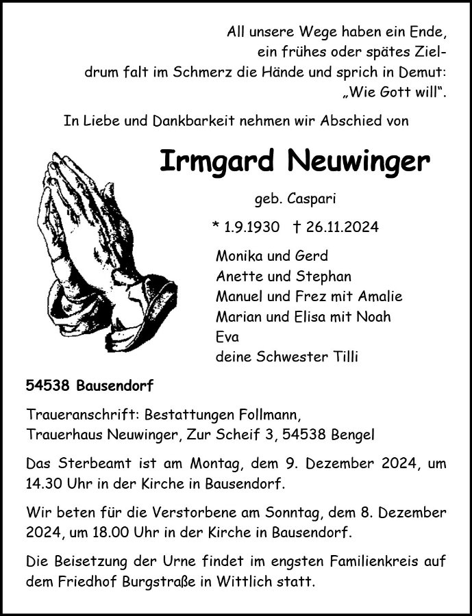 Trauerfeier, Kath. Pfarrkirche Bausendorf