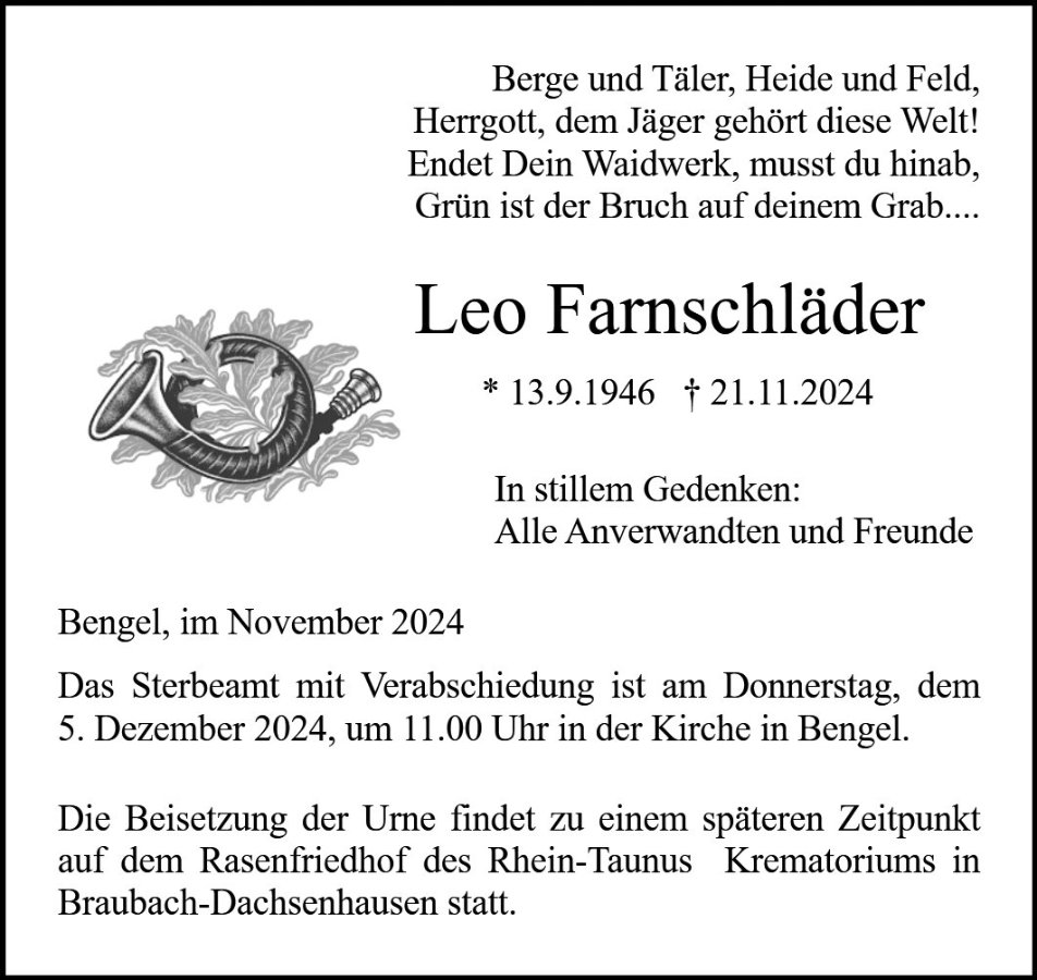 "Zum Gedenken an einen leidenschaftlichen Jäger und Jagdhornbläser, dessen letztes Halali in unseren Herzen weiter klingt. Möge seine Melodie für immer in der Natur widerhallen."