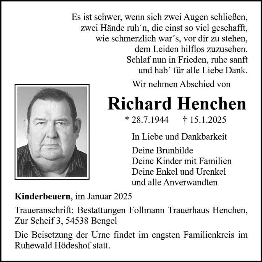 Es ist schwer, wenn sich zwei Augen schließen, zwei Hände ruh´n, die einst so viel geschafft,